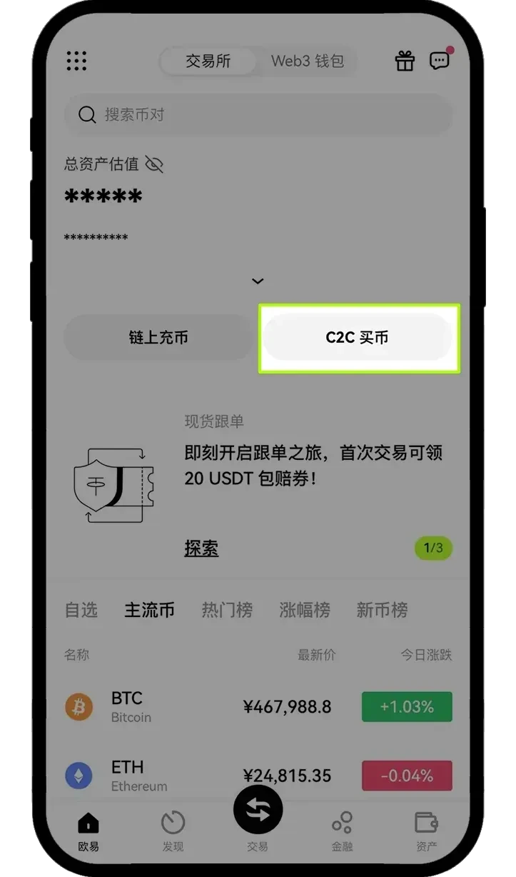 点击 App 首页左上角图标 -> 底部【关于欧易】 -> 【检查更新】。如有新版本,点击【立即更新】。